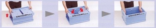 | 1.短側面の切り込み部分を持って、ゆっくり引き上げます。長側面が自然に立ち上がります。 | 2.側板を押し下げます。 | 3.側板を左右に押し広げ、垂直になるまで押し込み、しっかりと固定します。 |