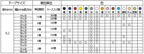 - 電気絶縁用ポリ塩化ビニル粘着テープ JIS規格C2336 A種に認可(*19mm幅)